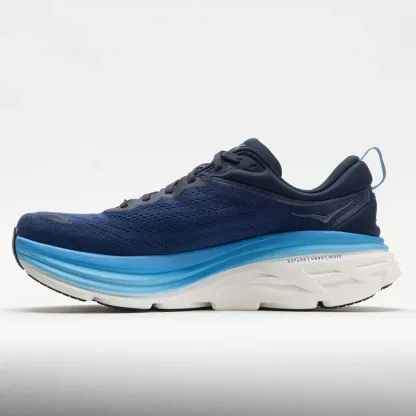 Take a bold step forward in the Hoka Bondi 8! This ultra-cushioned neutral running shoe provides luxurious comfort. Stay cool and cozy in the engineered mesh upper as the memory foam collar cradles your ankle. Enjoy an incredibly soft and bouncy ride on the lightweight EVA midsole. The extended heel geometry works with a rear crash pad, providing smooth landings and effortless transitions. If you're looking for that classic, high-cushioned HOKA experience, try the supremely soft Hoka Bondi 8!