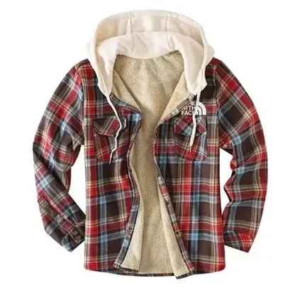 Mens Quilted Lining Flannel Long Sleeve Winter Loose Coat With Hood