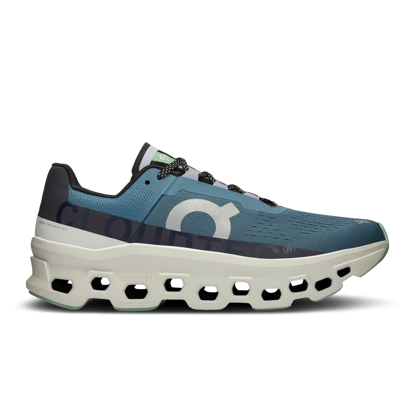 Running has never felt like this. With ON’s largest Cloud elements ever, this is running on Clouds with the volume turned up! Maximalist CloudTec® offers big cushioning, paired with an explosive Speedboard® and a radical rocker shape - the result is big energy return for an explosive feeling. Prepare for take-off! Light, durable, temperature resistant and big on energy return, Helion™ superfoam brings no-nonsense cushioning to this shoe's playful sensation. The step-in of the Cloudmonster makes running pretty much irresistible. The soft sockliner and upper turn recycled materials into next-gen comfort.