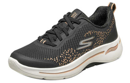 (WMNS) skecttghers Go Walk Arch Fit Slip-on Shoes Black/Gold 124486-BKGD